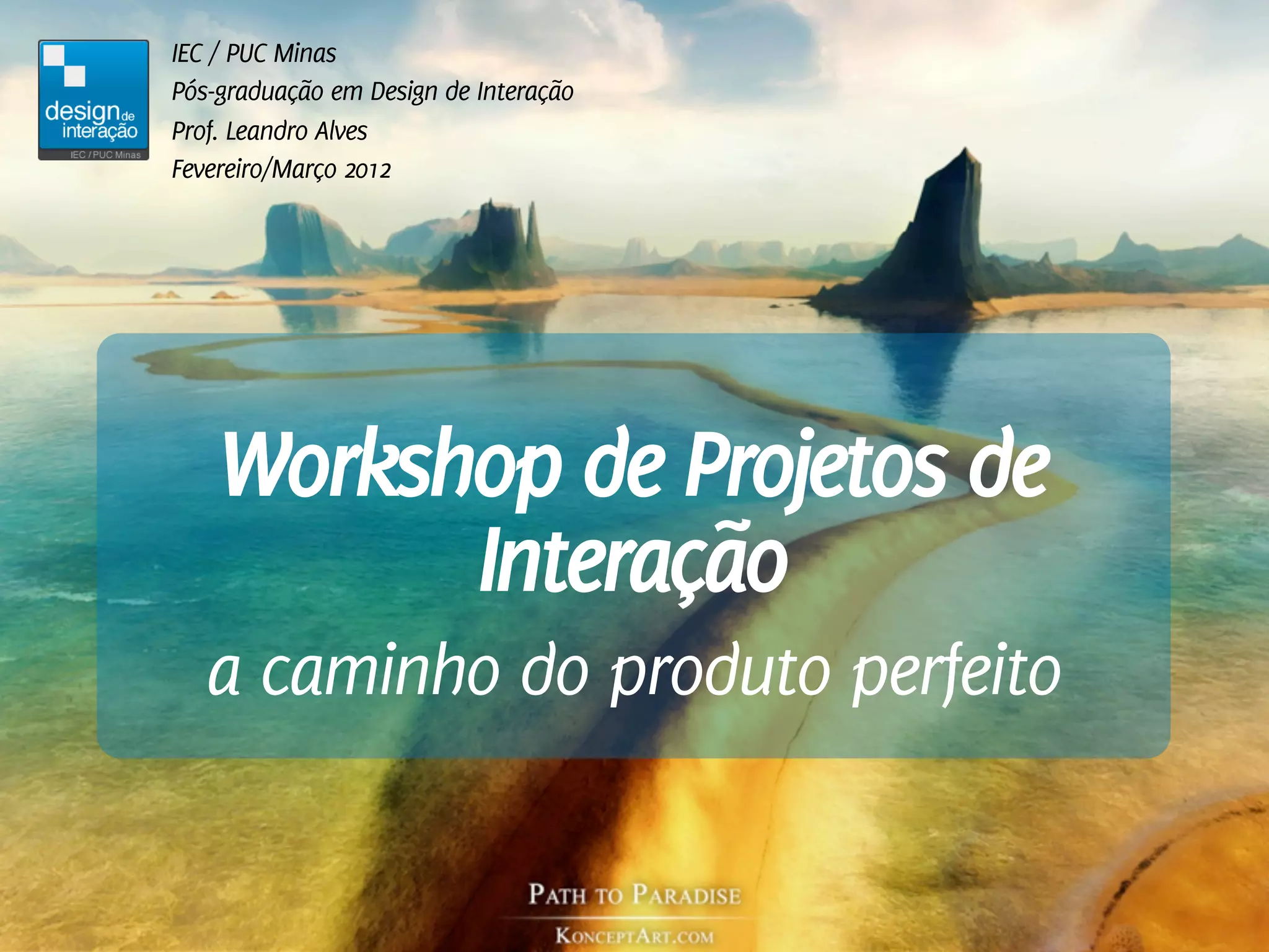 O workshop de projetos de interação abordou o desenvolvimento de projetos de design de interação com foco em empreendedorismo, desde a identificação e validação de demandas até a criação de protótipos e apresentação de resultados. Os alunos foram orientados a formar grupos e escolher problemas reais para resolver, acompanhando o progresso através de apresentações parciais até a apresentação final. O documento também enfatiza a importância de testar hipóteses e adaptar soluções com base em feedback e validações de usuários.