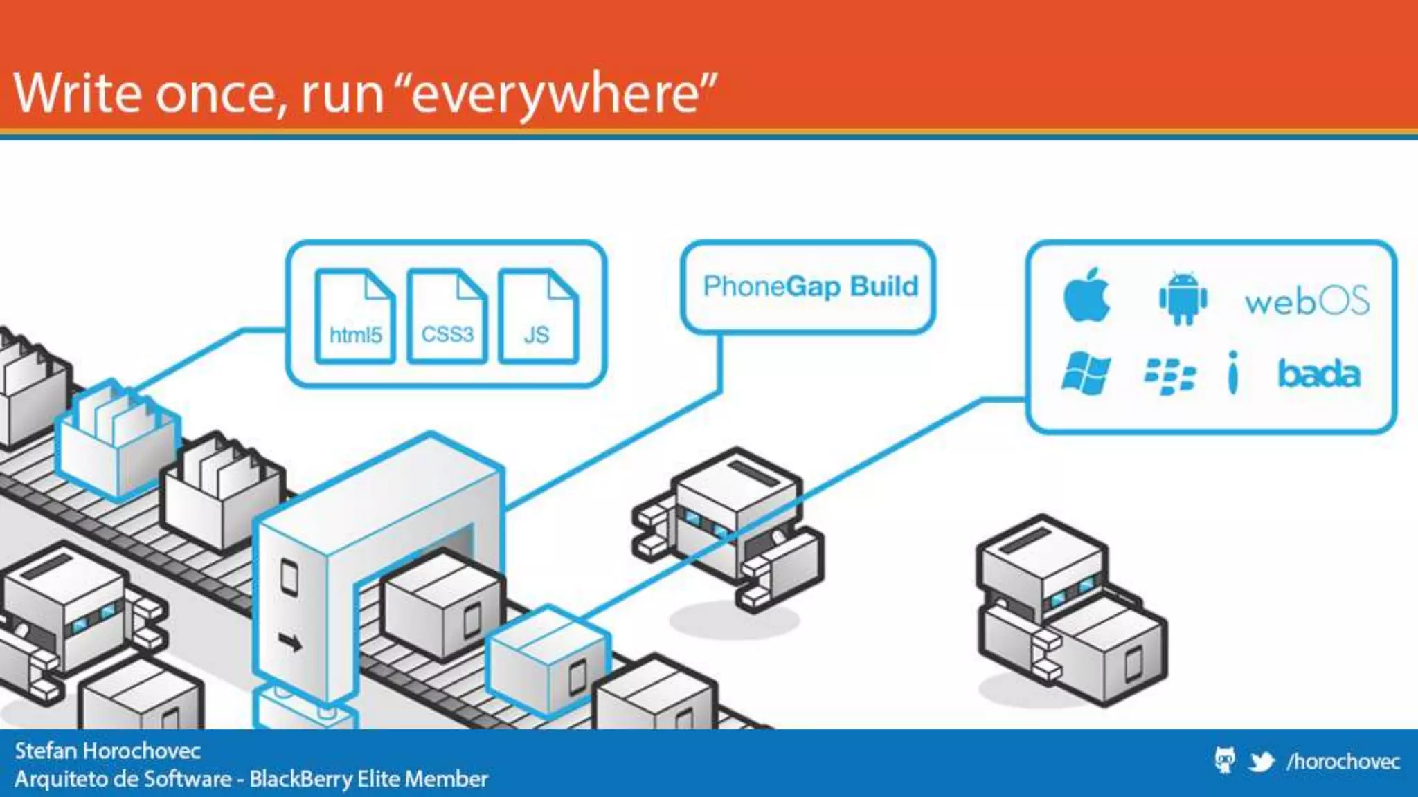 O documento apresenta Stefan Horochovec e sua palestra sobre desenvolvimento mobile utilizando tecnologias nativas e HTML. A palestra discute as principais plataformas mobile nativas (iOS, Android, Windows Phone e BlackBerry), ferramentas para desenvolvimento web como AngularJS, NodeJS e GulpJS, e o framework multiplataforma Cordova/Phonegap.