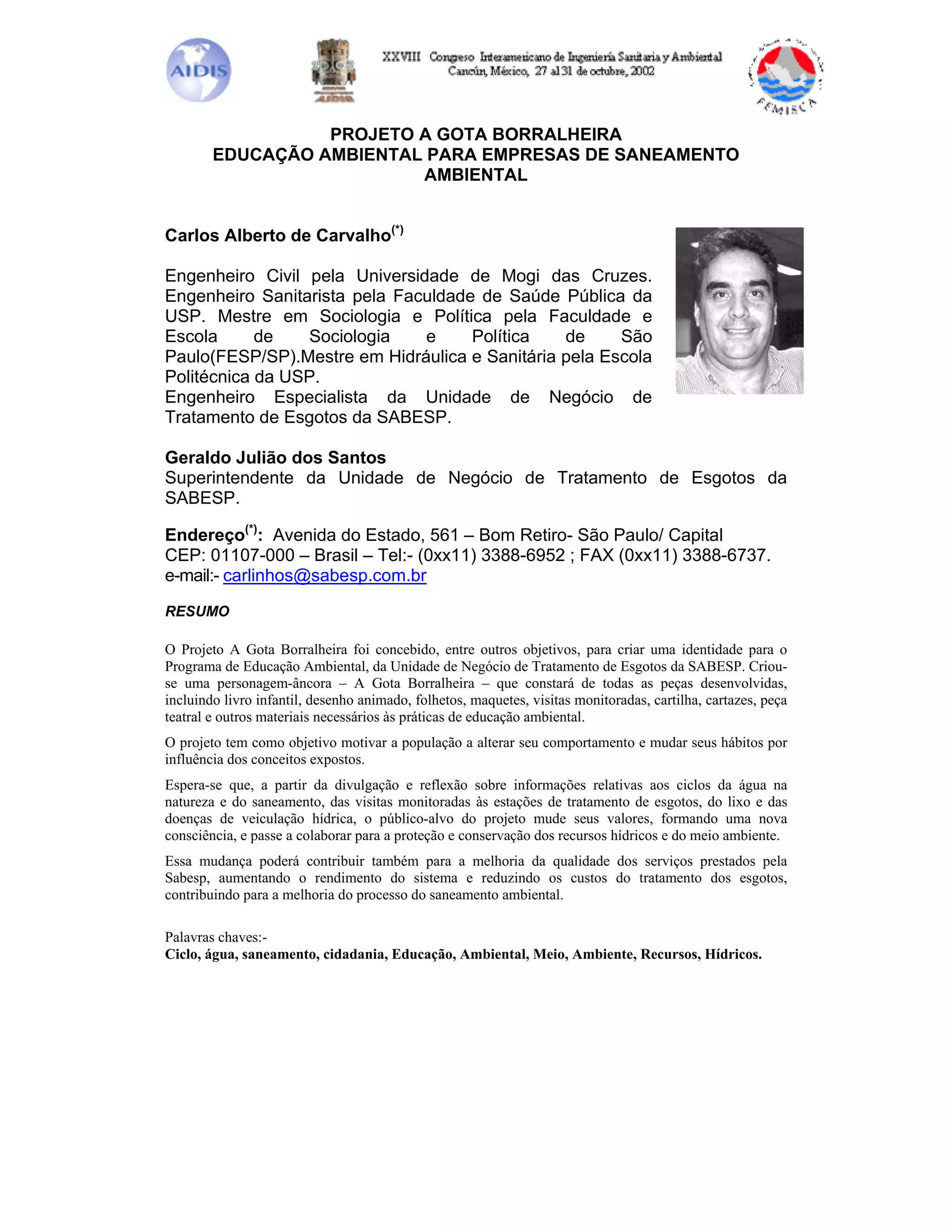 Este documento descreve o Projeto A Gota Borralheira, um programa de educação ambiental da SABESP que tem como objetivo ensinar o público sobre o ciclo da água e tratamento de esgoto através de uma personagem chamada Gota Borralheira. O projeto usa livros, desenhos animados, visitas a estações de tratamento e palestras para educar crianças, universitários e a comunidade sobre a importância da preservação dos recursos hídricos. Desde 1998, o projeto já atendeu dezenas de milhares