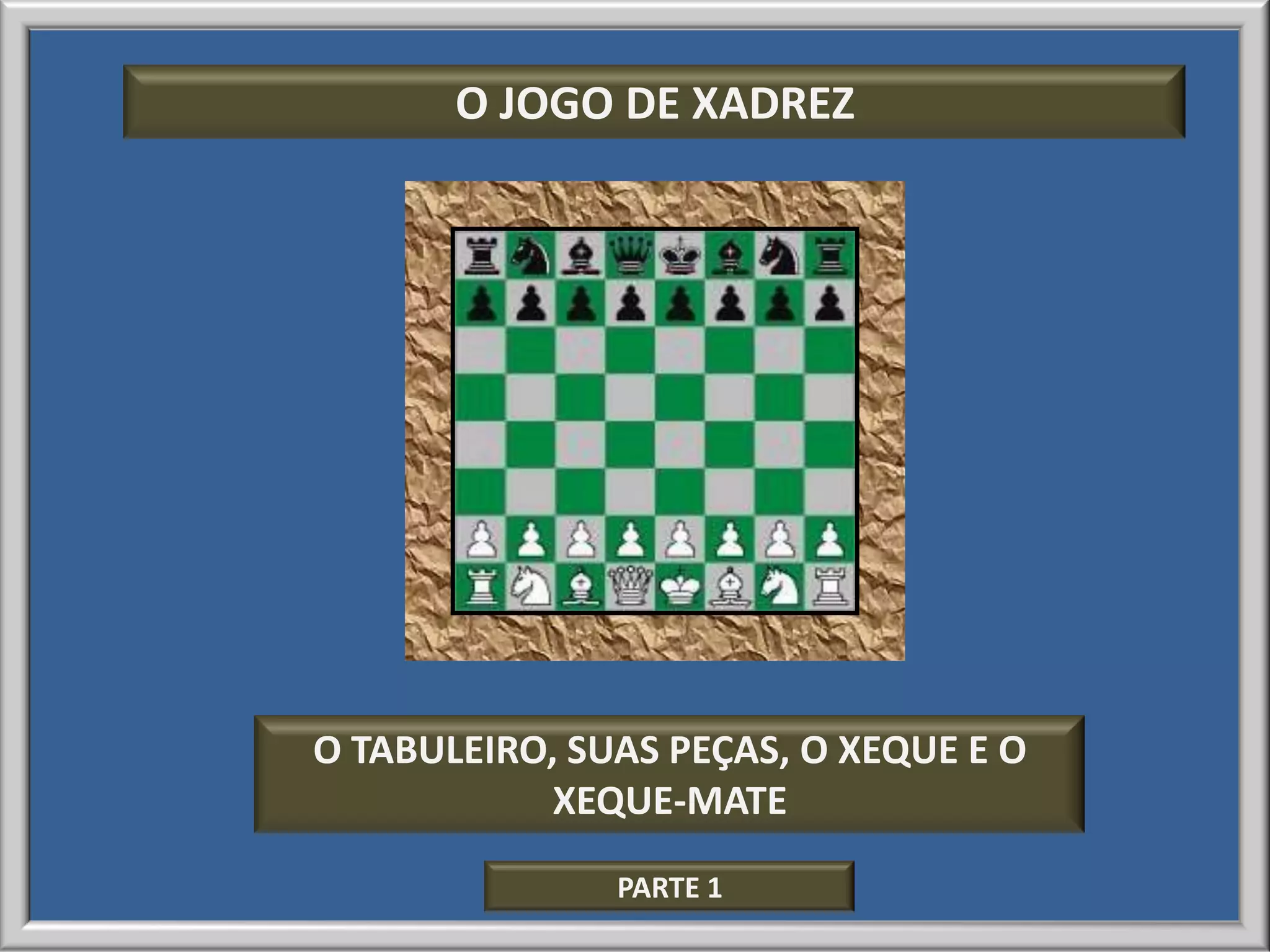 1) As peças no tabuleiro, como o rei, rainha, torres, bispos, cavalos e peões se movem;