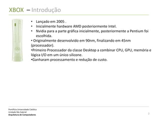 O documento descreve a evolução do Xbox 360 ao longo de suas diferentes versões. Inicialmente lançado em 2005, o Xbox 360 sofria com problemas de superaquecimento que levavam à falha do console, conhecida como "Three Red Lights" ou "Red Ring of Death". Ao longo dos anos, a Microsoft lançou novas versões com melhorias no resfriamento e componentes menores para tentar resolver o problema.