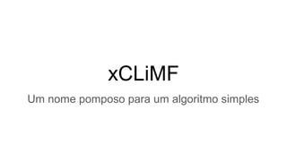 O documento descreve o algoritmo xCLiMF, uma variação do algoritmo CLiMF de filtragem colaborativa que maximiza o ranking de itens. xCLiMF usa uma abordagem baseada em modelo com atualização simultânea dos fatores latentes e sigmoid como função de ativação, melhorando os resultados do CLiMF original, especialmente em métricas de ranking como MRR. Testes em dados reais mostraram que xCLiMF obteve MRR superior ao algoritmo ALS.