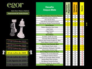 Este documento lista as datas de 27 de Julho a 2 de Agosto de 2009, possivelmente para planejamento de vendas diretas ou reuniões de um departamento de vendas.