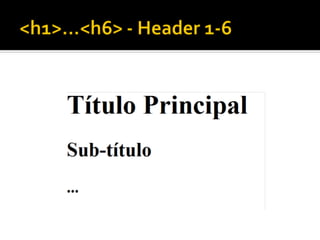O documento apresenta um resumo sobre os principais elementos e recursos da linguagem HTML, descrevendo em detalhes tags, atributos e suas funções para estruturar conteúdo web de forma semântica.