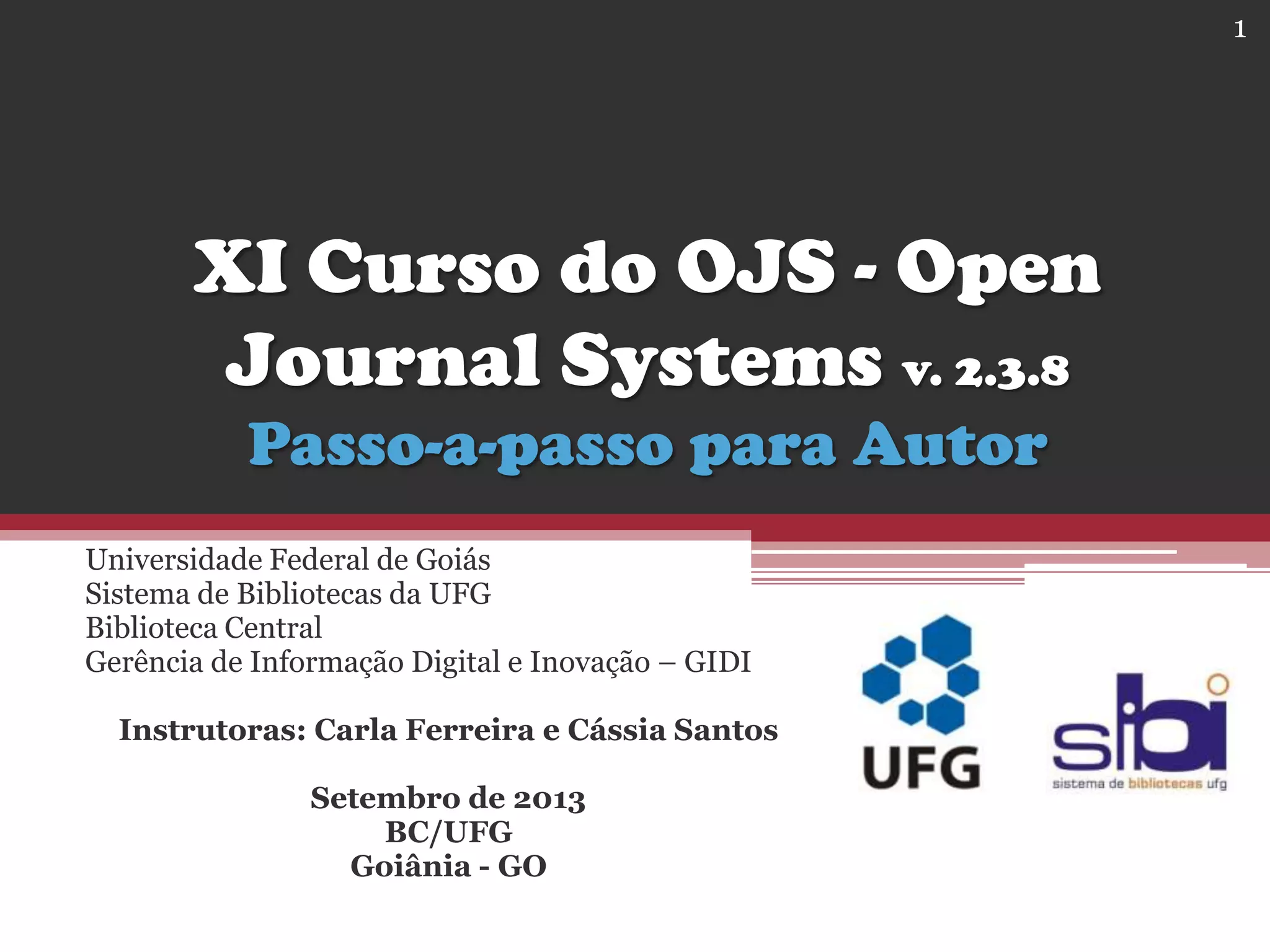 O documento é um guia passo a passo para autores que desejam submeter trabalhos acadêmicos ao sistema Open Journal Systems da Universidade Federal de Goiás. Ele aborda temas como cadastro na revista, submissão de artigos, inserção de metadados e documentação suplementar, além de fornecer orientações práticas e dicas para facilitar o processo. O objetivo é garantir que os autores compreendam e sigam os procedimentos corretos para efetuar suas submissões com sucesso.