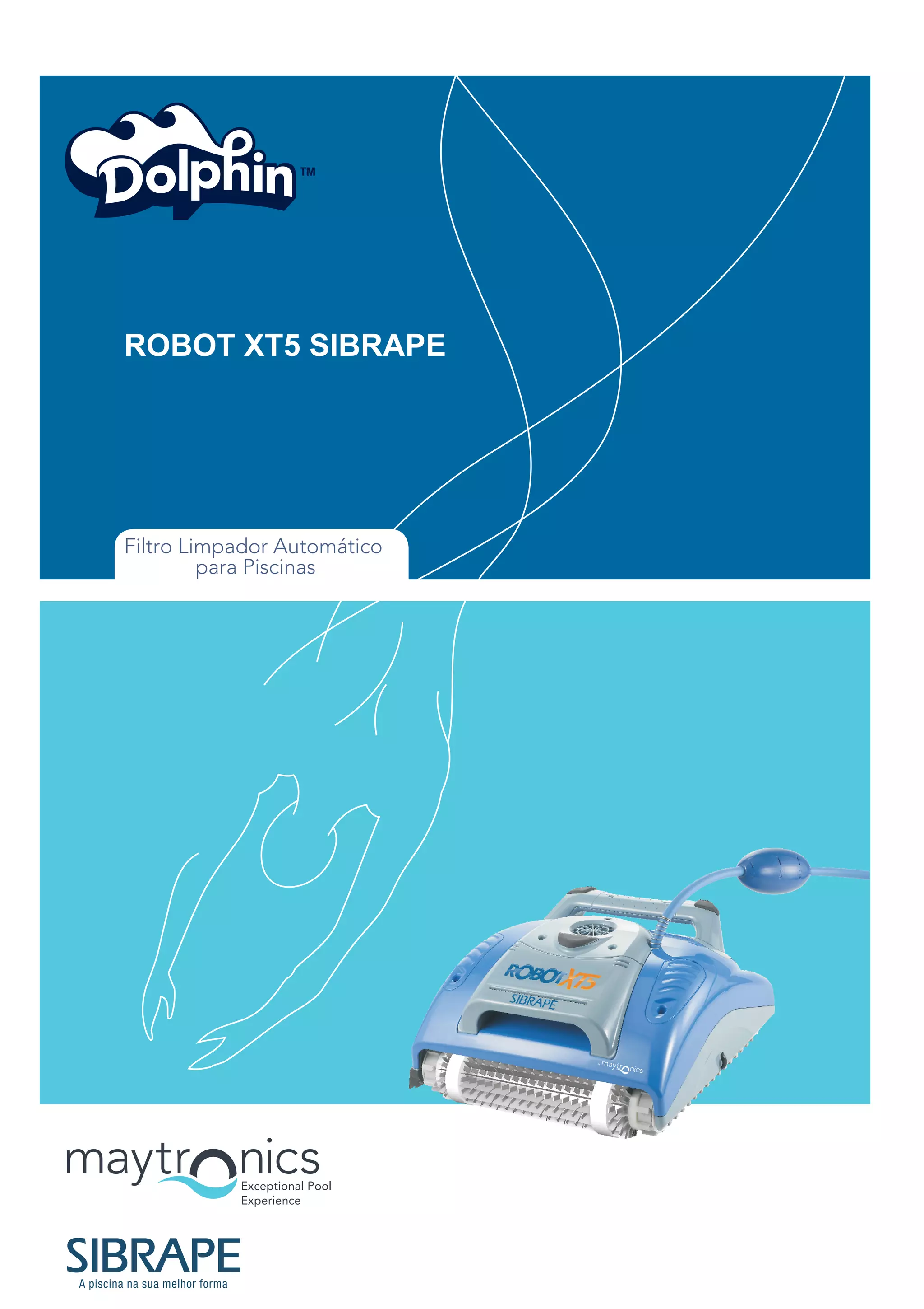 O documento descreve o robô XT5 SIBRAPE para limpeza de piscinas residenciais de até 10m. Ele esfrega, escova e aspira o chão, paredes e linha d'água, economizando energia e reduzindo o uso de produtos químicos. O robô é resistente, inteligente, com filtro fino e cabo giratório de 18m, limpando a piscina em 3 horas.