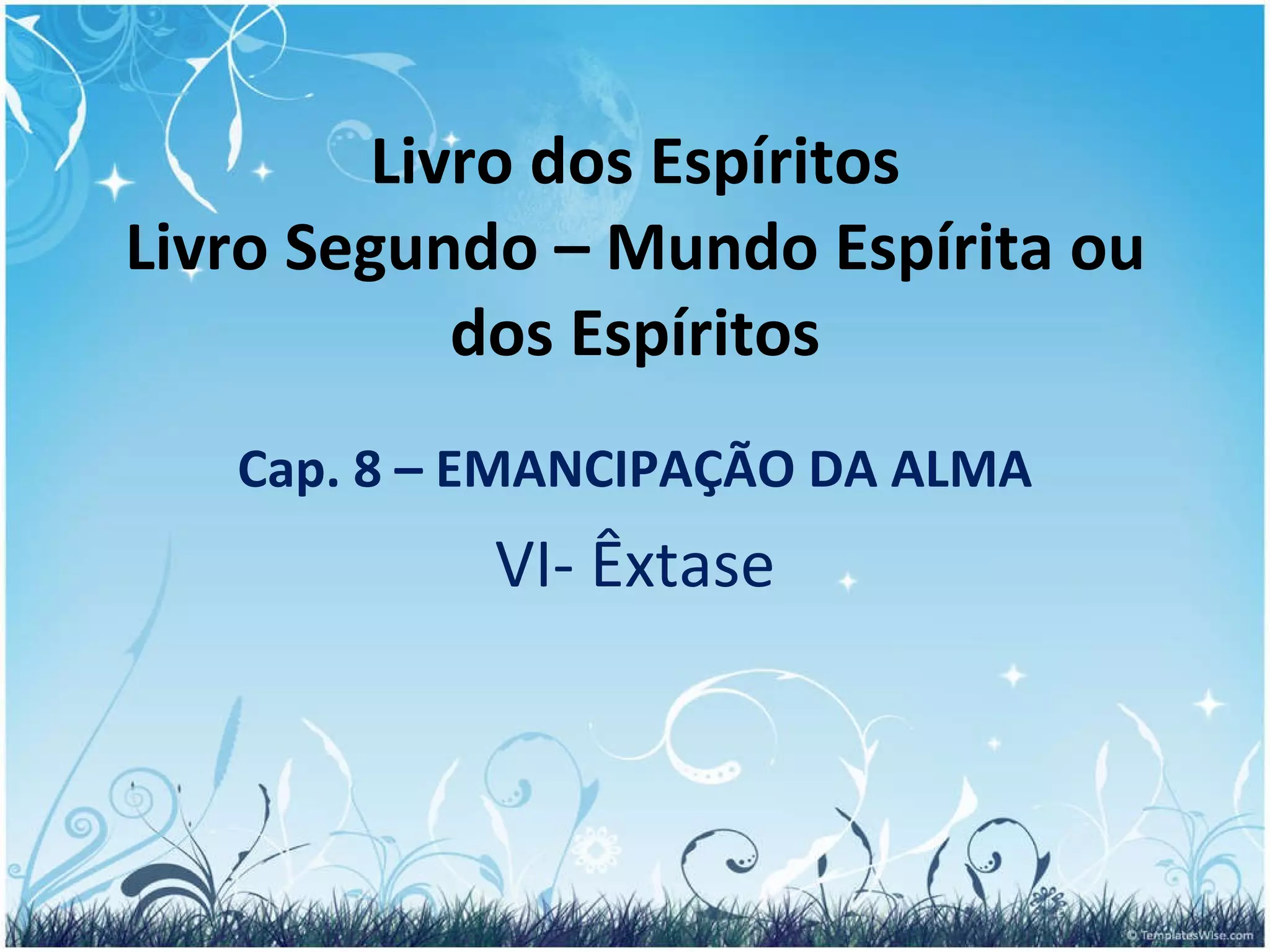 1) O documento discute os conceitos de emancipação da alma, sono, sonambulismo e êxtase, estados nos quais a alma se desprende parcial ou totalmente do corpo.