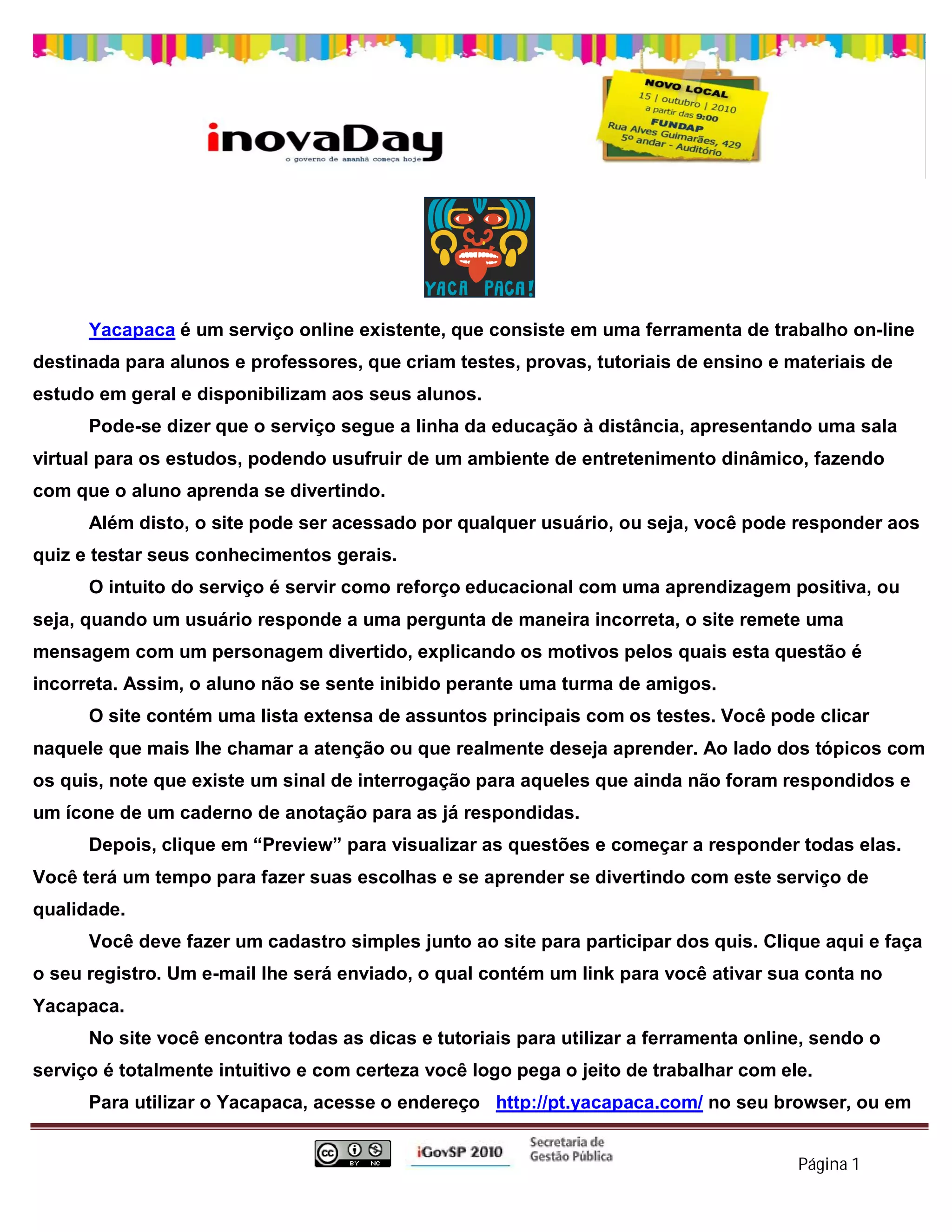 1) Yacapaca é uma ferramenta online para professores criarem testes e disponibilizarem materiais de estudo para alunos.
