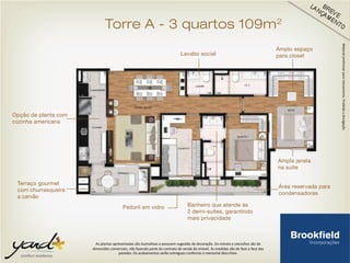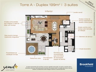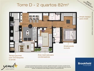 O documento descreve o empreendimento residencial Yard Comfort Residence, localizado em Curitiba. O empreendimento oferece apartamentos de 2 a 4 quartos e duplex com vagas de garagem. Conta com diversas opções de lazer como piscinas, academia, brinquedoteca e salão de festas. O local também é descrito como tranquilo e próximo a escolas, supermercados e outros serviços.