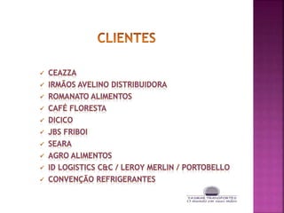 O documento aborda serviços de transporte e logística, incluindo entrega de e-commerce, distribuição de revistas e montagem de kits. Destaca a importância da eficiência, comprometimento e pontualidade na operação. Informações de contato e endereço da filial em Osasco, SP, também estão incluídas.