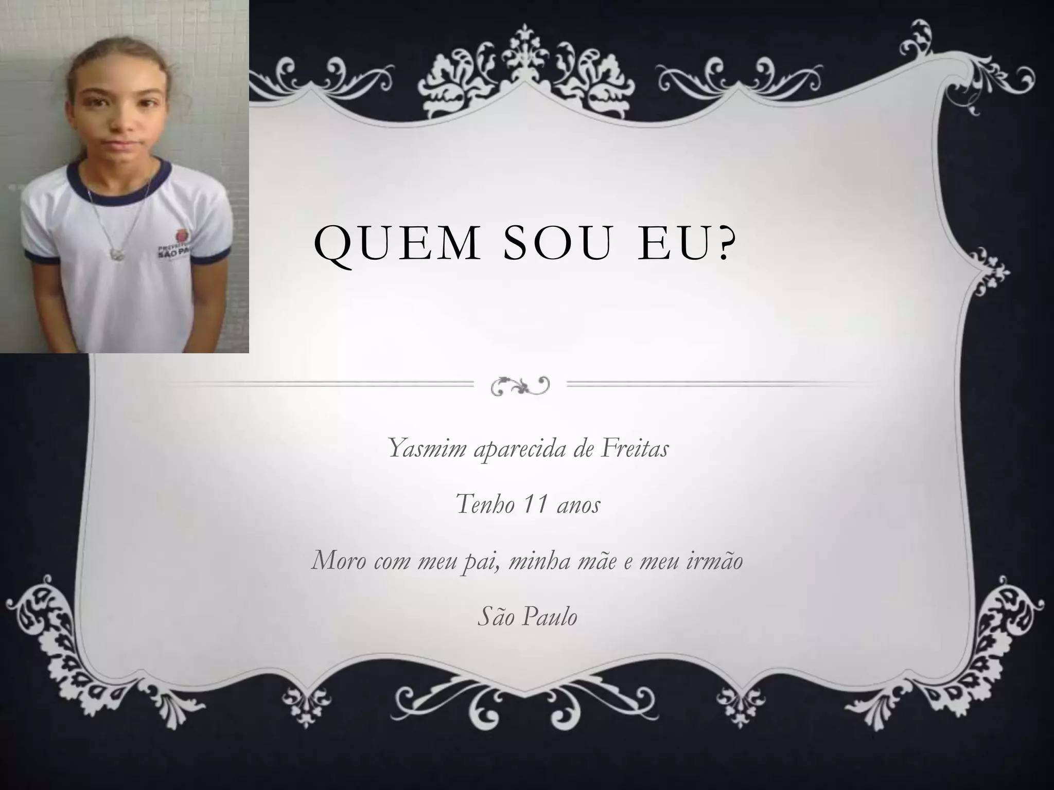 Yasmim é uma menina de 11 anos que mora em São Paulo com seus pais e irmão. Ela gosta de assistir TV, ouvir música pop e rap, e passar o tempo livre com seus melhores amigos Mel, Yasmim e Giovanna no cinema, parque aquático ou assistindo anime. Seu prato preferido é peixe frito com batata frita e coração de galinha. Na escola, estuda kung-fu e acredita que a reciclagem e plantio de árvores podem melhorar o mundo.
