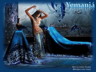 Yemanjá é a orixá da água doce e salgada, protetora das mulheres e da família. Ela é representada pela cor azul e símbolos como sereia e concha. O documento descreve os sete caminhos de Yemanjá, suas qualidades, como é invocada e os presentes que prefere receber.