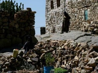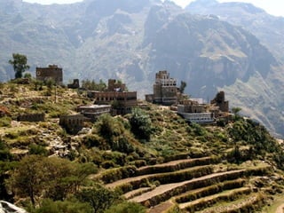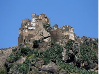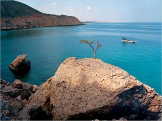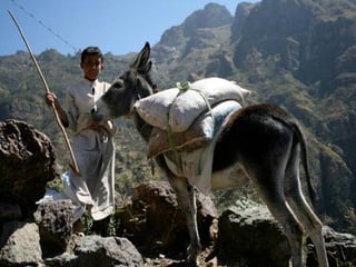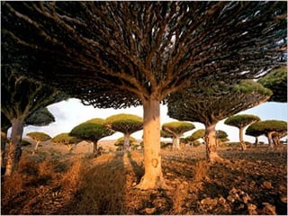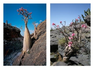 A estranha vegetação da ilha de Socotra no Iémen, incluindo cafeeiros com frutos e plantas únicas, e como sua colheita e transporte são importantes para a região.