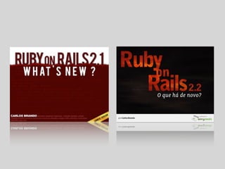 O documento analisa o funcionamento do framework Ruby on Rails e introduz o framework 'Sociably', que utiliza uma arquitetura push-based MVC. Ele discute componentes como conexão com banco de dados e gerações de códigos, além de comparar templates ERB e Haml. O autor também fornece um exemplo prático de como criar uma aplicação simples utilizando esses recursos.