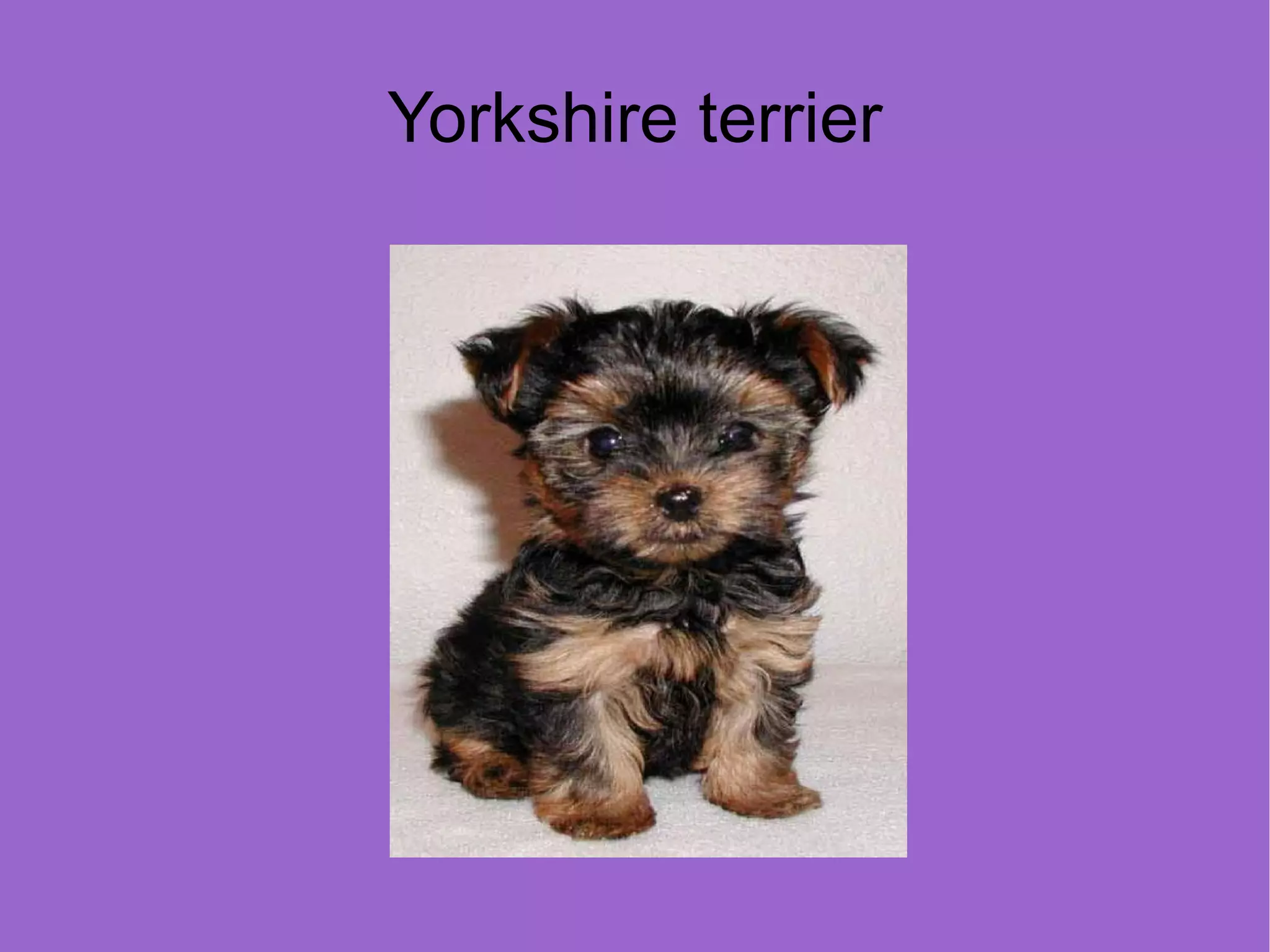 O Yorkshire Terrier é uma raça de cão pequena originária da Inglaterra, criada inicialmente para caçar roedores, mas que se tornou popular como animal de estimação. Eles pesam entre 2,5 a 3,5 kg, têm pelo longo e liso e vivem de 12 a 15 anos.