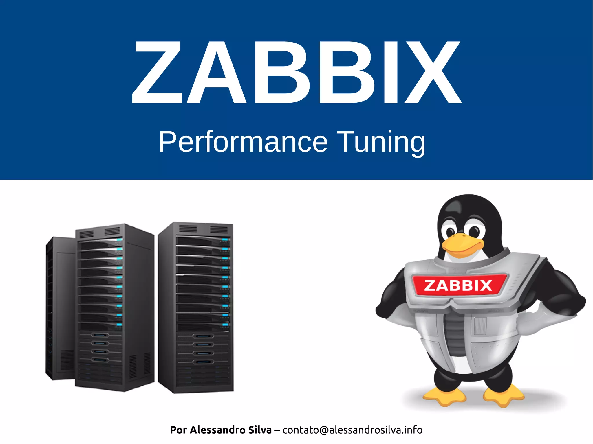 O documento discute técnicas de performance tuning para o Zabbix, incluindo: