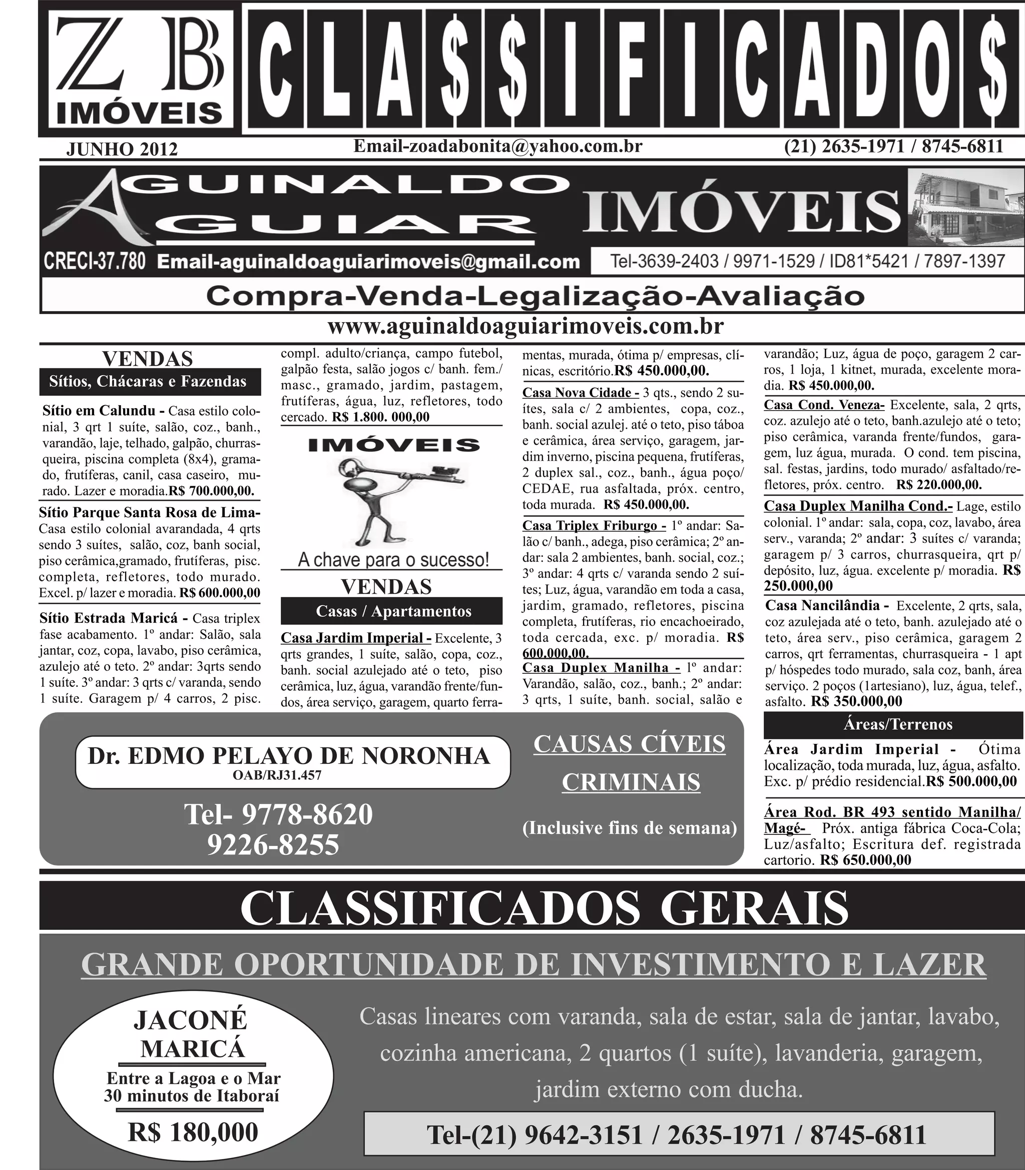 3) Classificados variados como venda de veículo, música para campanha política e grupo de apoio a alcoólatras são listados no final.