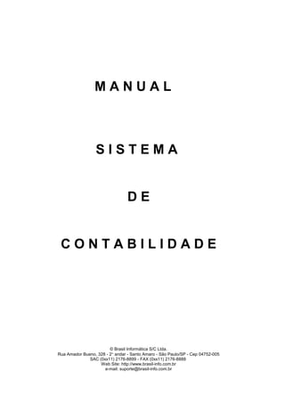 1) O documento descreve um sistema de contabilidade desenvolvido para simplificar a rotina administrativa de empresas de diferentes setores.