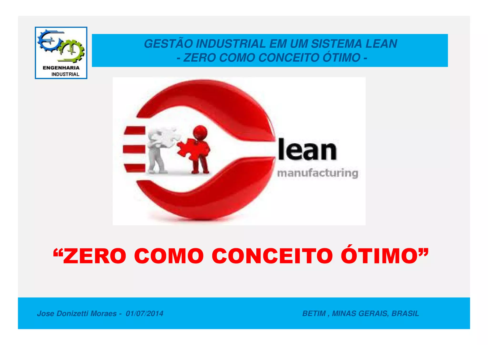 O documento discute os dez termos-chave para entender os sistemas de manufatura japoneses, focando no terceiro termo "zero como conceito ótimo". Este conceito se refere a objetivos absolutos de zero defeitos, quebras, estoque ou reclamações do cliente. O documento explica que o foco no zero elimina discussões sobre níveis ideais e equilíbrios, e que alcançar o zero é um desafio que requer trabalho duro construído sobre bases sólidas.