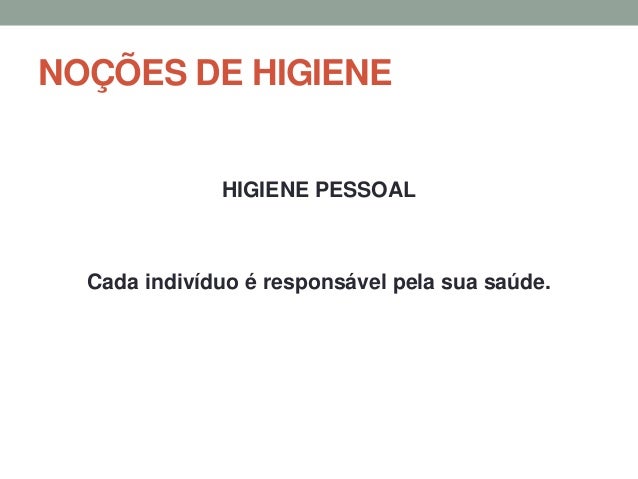 28. 28. NOÇÕES DE HIGIENE HIGIENE PESSOAL Cada indivíduo é responsável pela sua saúde.
