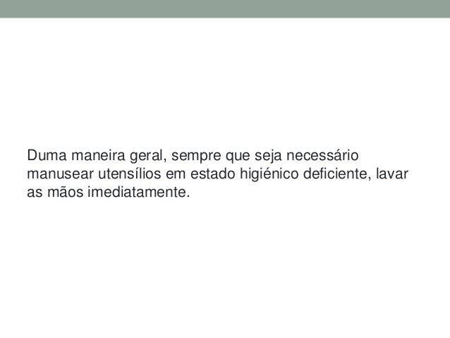 38. 38. Duma maneira geral, sempre que seja necessário manusear utensílios em estado higiénico deficiente, lavar as mãos imediatamente.