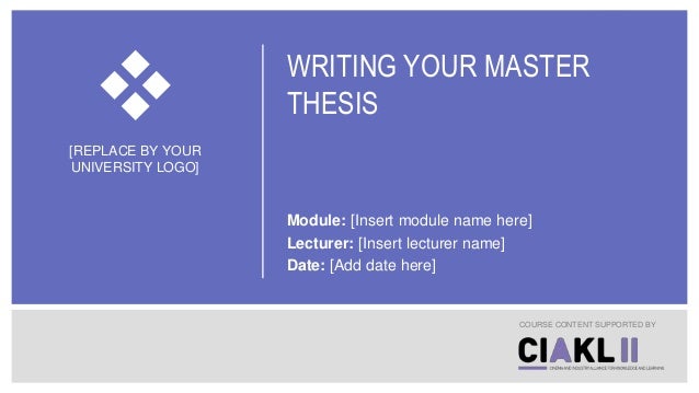 2. 2. WRITING YOUR MASTER THESIS Module: [Insert module name here] Lecturer: [Insert lecturer name] Date: [Add date here] COURSE CONTENT SUPPORTED BY [REPLACE BY YOUR UNIVERSITY LOGO]