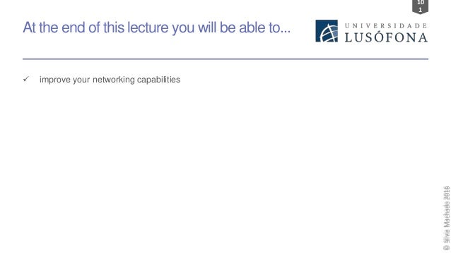 100. 100. ©SílviaMachado2016 10 1 At the end of this lecture you will be able to...  improve your networking capabilities ©SílviaMachado2016