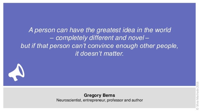 3. 3. ©SílviaMachado2016 A person can have the greatest idea in the world – completely different and novel – but if that person can’t convince enough other people, it doesn’t matter. Gregory Berns Neuroscientist, entrepreneur, professor and author