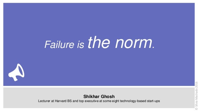 15. 15. ©SílviaMachado2016 Failure is the norm. Shikhar Ghosh Lecturer at Harvard BS and top executive at some eight technology-based start-ups