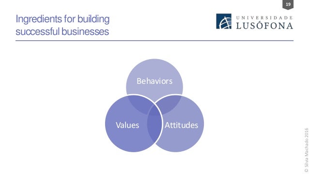 18. 18. ©SílviaMachado2016 19 Ingredients for building successful businesses Behaviors AttitudesValues