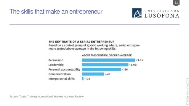 20. 20. ©SílviaMachado2016 21 The skills that make an entrepreneur Source: Target Training International, Harvard Business Review