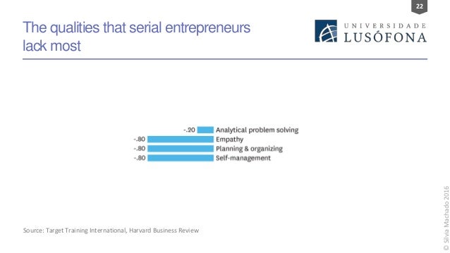 21. 21. ©SílviaMachado2016 22 The qualities that serial entrepreneurs lack most Source: Target Training International, Harvard Business Review