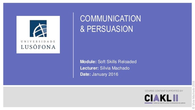 23. 23. ©SílviaMachado2016 COMMUNICATION & PERSUASION Module: Soft Skills Reloaded Lecturer: Sílvia Machado Date: January 2016 COURSE CONTENT SUPPORTED BY