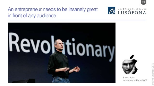 25. 25. ©SílviaMachado2016 26 An entrepreneur needs to be insanely great in front of any audience Steve Jobs in Macworld Expo 2007