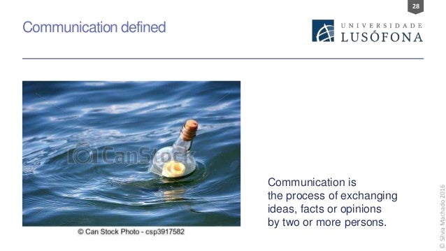 27. 27. ©SílviaMachado2016 28 Communication defined Communication is the process of exchanging ideas, facts or opinions by two or more persons.