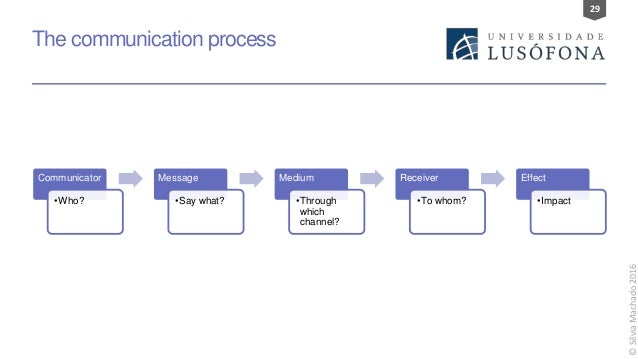 28. 28. ©SílviaMachado2016 29 The communication process Communicator •Who? Message •Say what? Medium •Through which channel? Receiver •To whom? Effect •Impact