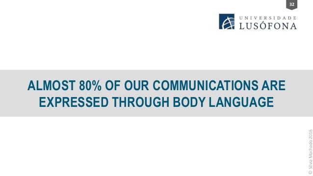 31. 31. ©SílviaMachado2016 32 ALMOST 80% OF OUR COMMUNICATIONS ARE EXPRESSED THROUGH BODY LANGUAGE