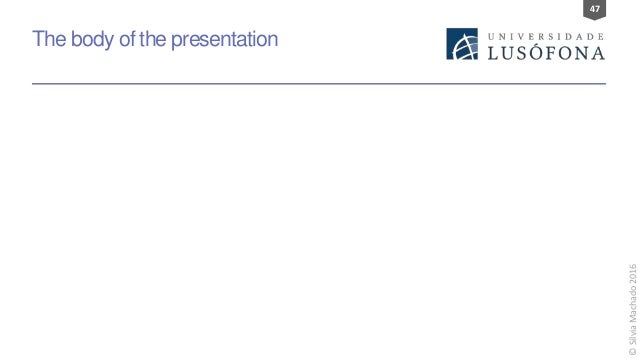 46. 46. ©SílviaMachado2016 47 The body of the presentation