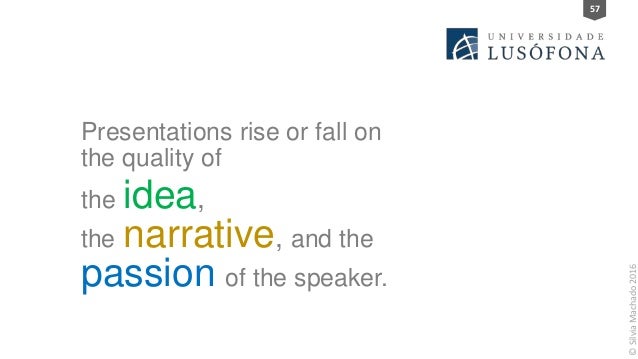 56. 56. ©SílviaMachado2016 57 Presentations rise or fall on the quality of the idea, the narrative, and the passion of the speaker.