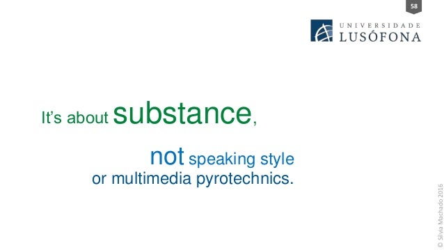 57. 57. ©SílviaMachado2016 58 It’s about substance, not speaking style or multimedia pyrotechnics.