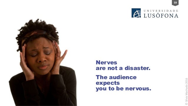 58. 58. ©SílviaMachado2016 59 Nerves are not a disaster. The audience expects you to be nervous.