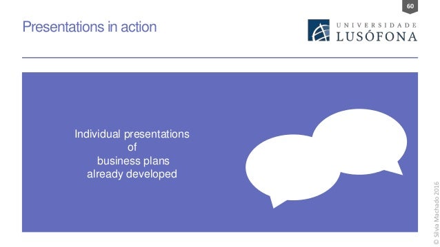 59. 59. ©SílviaMachado2016 60 Presentations in action Individual presentations of business plans already developed