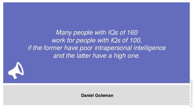 63. 63. ©SílviaMachado2016 Many people with IQs of 160 work for people with IQs of 100, if the former have poor intrapersonal intelligence and the latter have a high one. Daniel Goleman