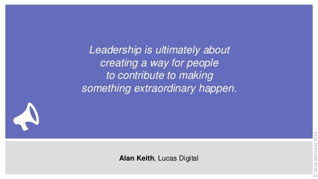 74. 74. ©SílviaMachado2016 Leadership is ultimately about creating a way for people to contribute to making something extraordinary happen. Alan Keith, Lucas Digital