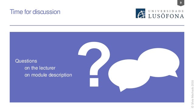 8. 8. ©SílviaMachado2016 9 Time for discussion Questions on the lecturer on module description