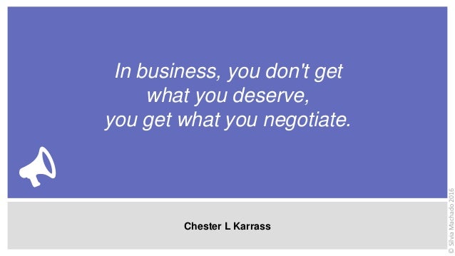 86. 86. ©SílviaMachado2016 In business, you don't get what you deserve, you get what you negotiate. Chester L Karrass