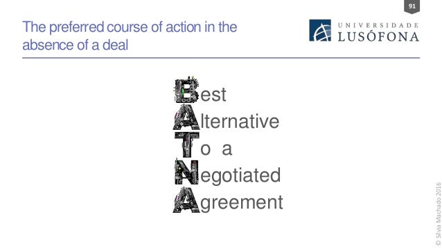 90. 90. ©SílviaMachado2016 91 The preferred course of action in the absence of a deal est lternative o a egotiated greement