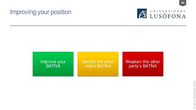 91. 91. ©SílviaMachado2016 92 Improving your position Improve your BATNA Identify the other side’s BATNA Weaken the other party’s BATNA