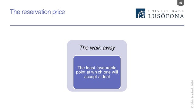 92. 92. ©SílviaMachado2016 93 The reservation price The walk-away The least favourable point at which one will accept a deal
