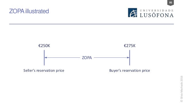 94. 94. ©SílviaMachado2016 95 ZOPAillustrated ZOPA €250K €275K Buyer’s reservation priceSeller’s reservation price